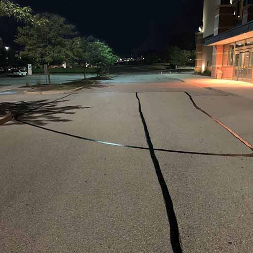 - Cracks & Crack Sealing/Filling: Cracks in asphalt, whether small or large, allow water to penetrate and weaken the structure. Our crack sealing and filling services provide a durable solution to prevent further cracking and extend your pavement’s life.